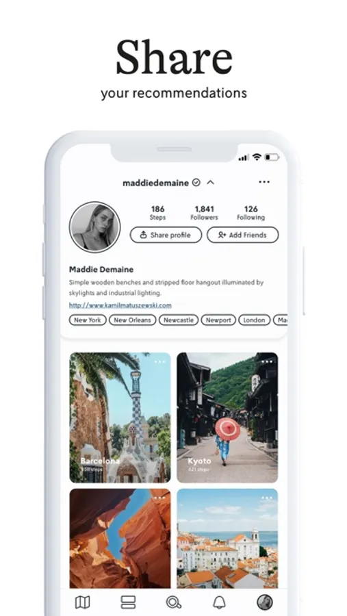 With Step you can now easily save and share your favorite places from all over the world – allowing you to build a personally curated map of the world, populated by the people you love, respect, and admire.