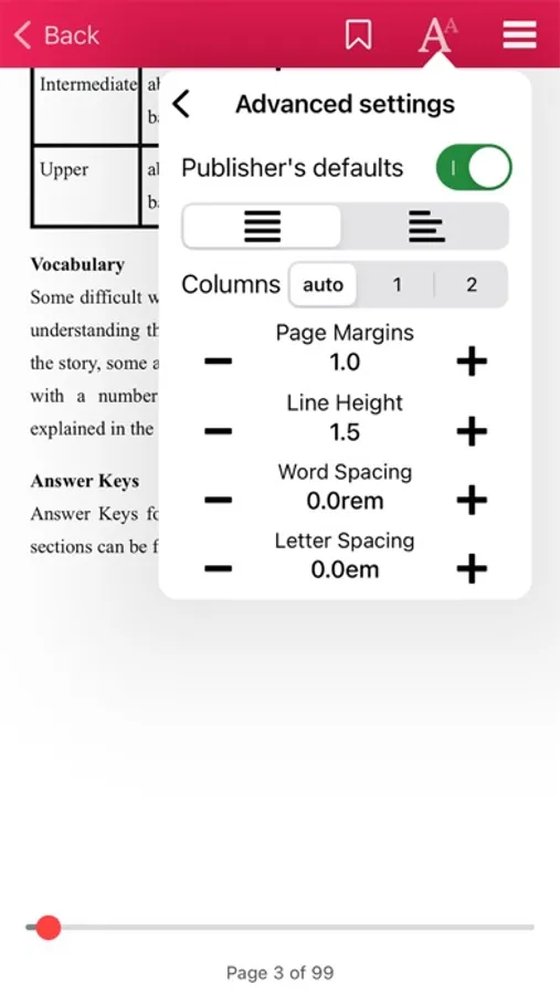 • Auto-save your current position in the book – so that you can pick up right where you left off.