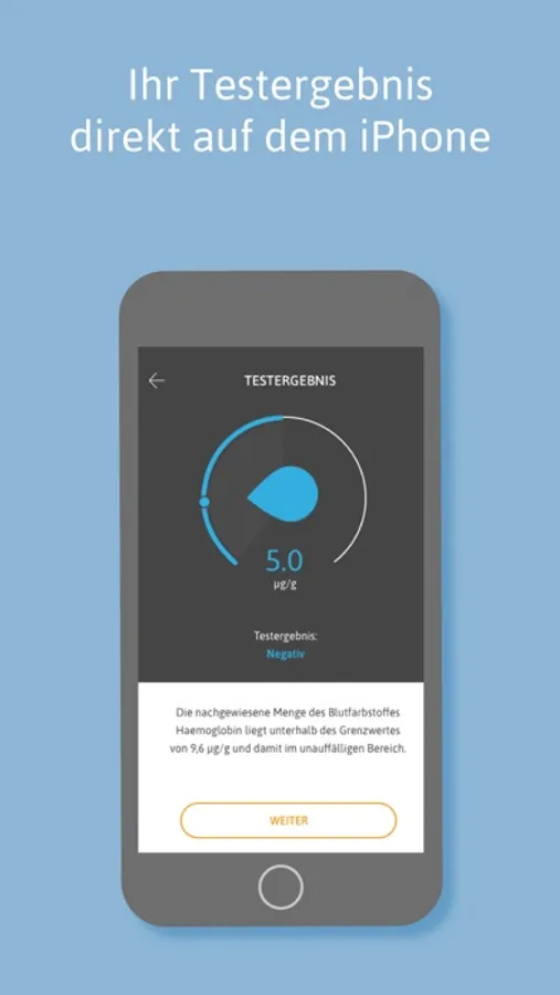 Reliable and simple app for the quantitative determination of hemoglobin in stool for in vitro diagnostic use.