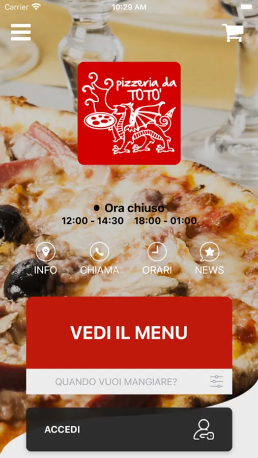 - Ordina comodamente da casa tua e ritira il tuo take away in ristorante