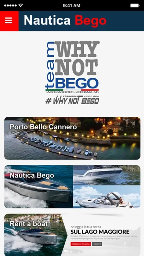 Nautica Bego Srl, è posizionata nel cuore di Verbania, vicino al nuovo Teatro Maggiore e ai Giardini Botanici di Villa Taranto, a venti minuti dal confine svizzero e dall'uscita dell'autostrada Baveno/Verbania. Situata in posizione strategica sul Lago Maggiore, da qui si raggiungono in pochissimi minuti le maggiori meraviglie come le Isole Borromee, Stresa, Santa Caterina del Sasso, i Castelli di Cannero.