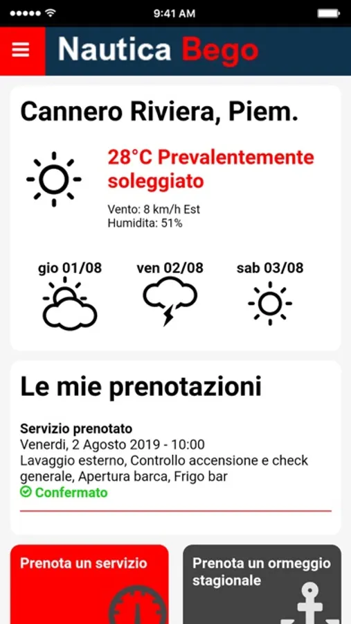 Attraverso l'applicazione è possibile prenotare i vari servizi offerti, visualizzare il meteo nella zona del Lago Maggiore e molto altro ancora.