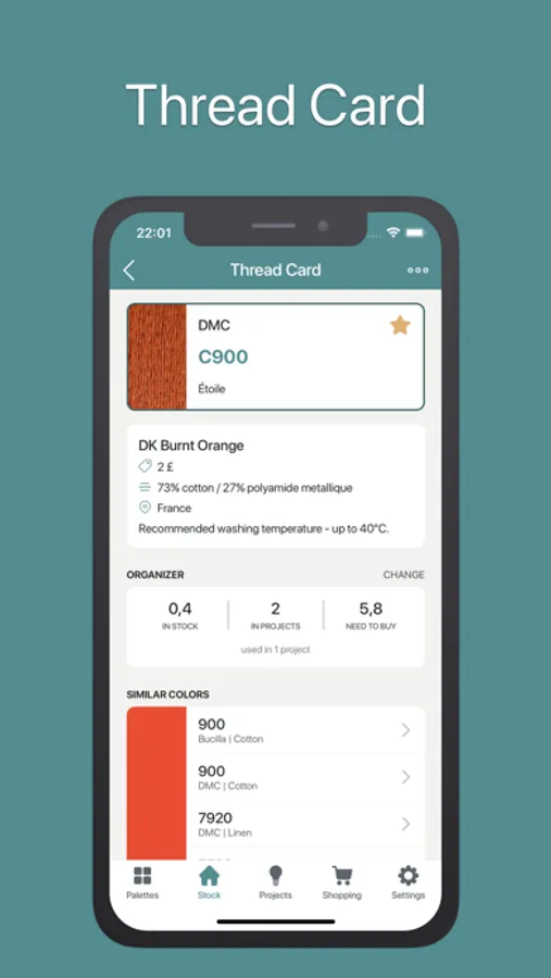 Universal thread organizer for needlework. You can add palettes manually or import ready-made embroidery palettes from the iMuline application.