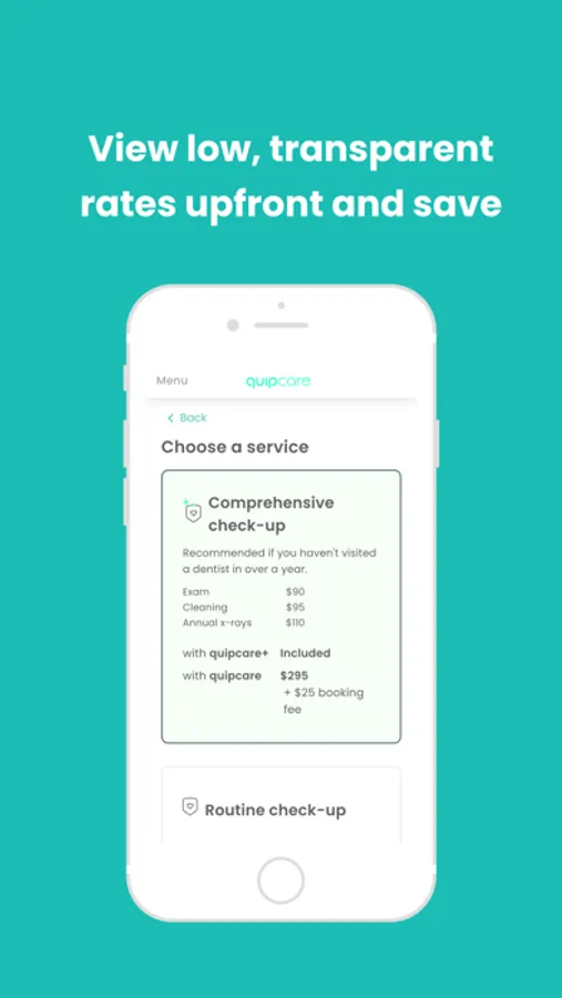 Beyond your daily brushing routine, regular visits to the dentist are just as important for maintaining a healthy mouth. And that’s why we created quipcare — a seamless way to find, book, and pay less for quality dental services (saving you hundreds versus average rates in your area).