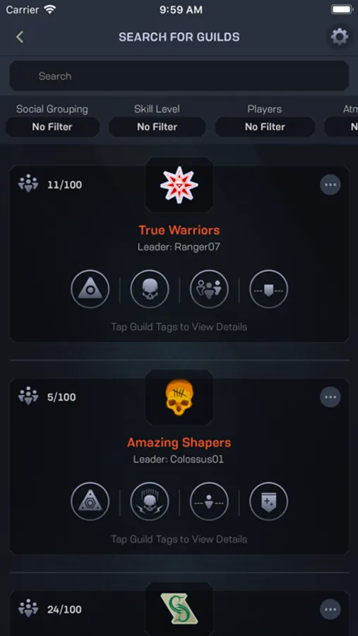 • Looking to meet new players, or join the guild all your friends are in? Search filters help you find exactly the group you’re looking for.