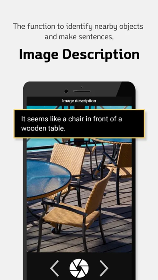 Image Description - Identifies objects around you and creates a sentence that describes the identified scene.