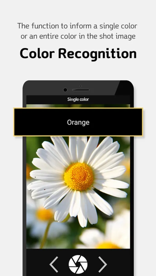 Color Recognition - Supports the single-color mode that tells you the color of the center of the screen and the full-color mode that tells you the color that occupies a large part of the entire screen.