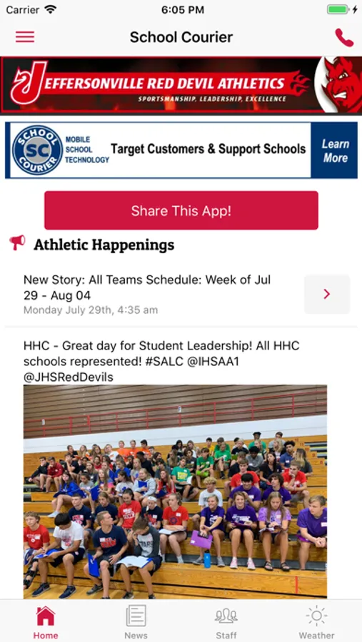 The Jeffersonville Red Devil Athletics app for iOS allows student, faculty, parents, and the community keep up-to-date with athletic communication. Jeffersonville High School is a public high school located in Jeffersonville, Indiana. The school serves students in grades 9 through 12 from Jeffersonville, Utica, and sections of Clarksville. Jeffersonville is in the school district of Greater Clark County Schools.