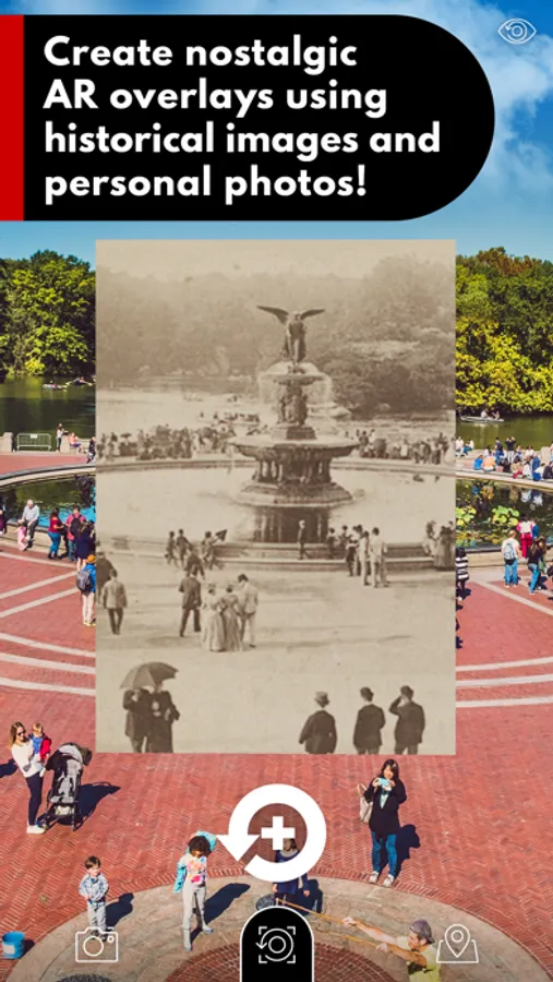 Map Mode lets you see where all your AR images and photos are geographically located. Pinch the screen to zoom in and out and find your photos pinned on the map. Tapping a pin will open its corresponding image or photo in your timeline.