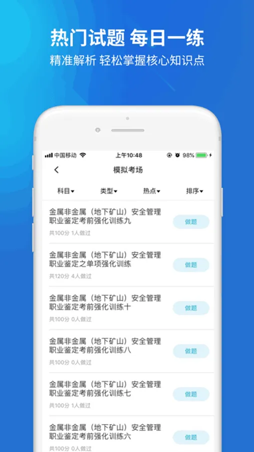 上学吧安全生产考试题库是一个针对国家电网安规考试的题库,包含了电网安规、电力安规培训、国家电网电力安全规程、国家电网安规配电部分、国家电网通信安规等考试大纲所确定的范围。更有历年真题及模拟试题题型,题库中的试题全真模拟真实的考试,是各位考生学习乃至通过考试的好帮手。安全生产题库APP的主要特点:1、强大的搜题功能上学吧安全生产考试题库新增搜题功能,国家电网安规考试中的疑问一搜便知,更支持语音和拍照搜题。2、丰富的练习与做题模式上学吧安全生产考试题库有模拟考场、历年真题练习、每日一练、快速练习、考点练习、考试押题、做题记录等多种学习与做题模式、丰富多样化的陪你一起考国家电网安规。