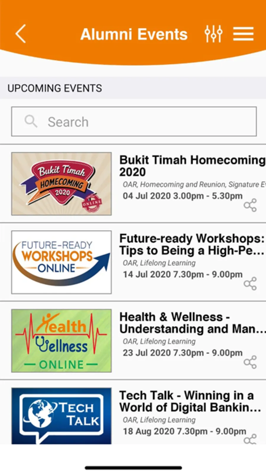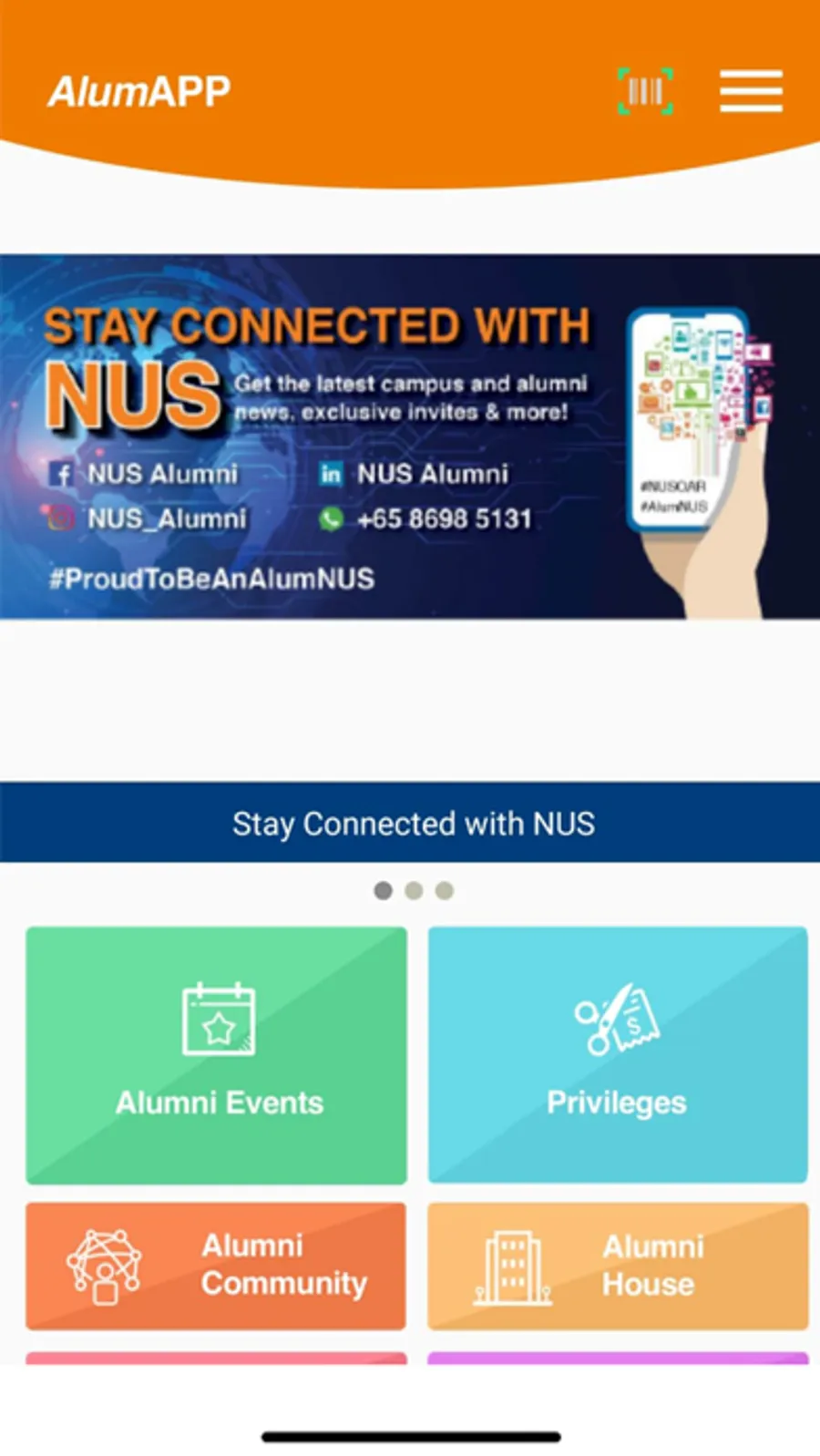 NUS AlumAPP serves as a directory for alumni-related information, news, events and privileges. It enables alumni to easily navigate alumni services and engage in the University’s events and initiatives.