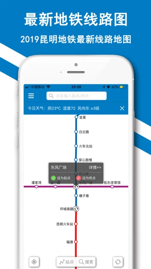 昆明地铁App,一款专业地铁出行智能助手。拥有2019昆明最新地铁线路图,查询推荐最优换乘线路,最新站点信息全掌握(含周边)等地铁出行信息和功能。