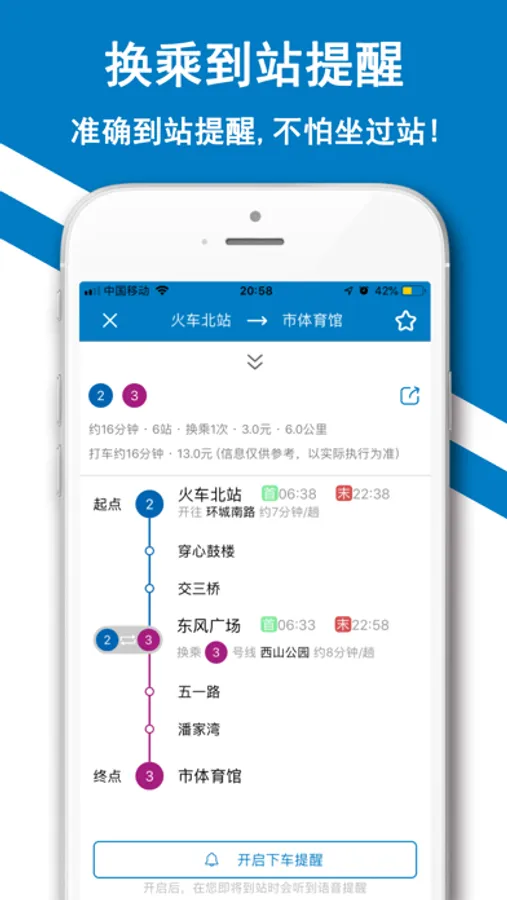 最优换乘线路:时时监控地铁运行状态(通畅或拥堵),查询推荐最优换乘线路,以及乘坐的时间,票价,距离。