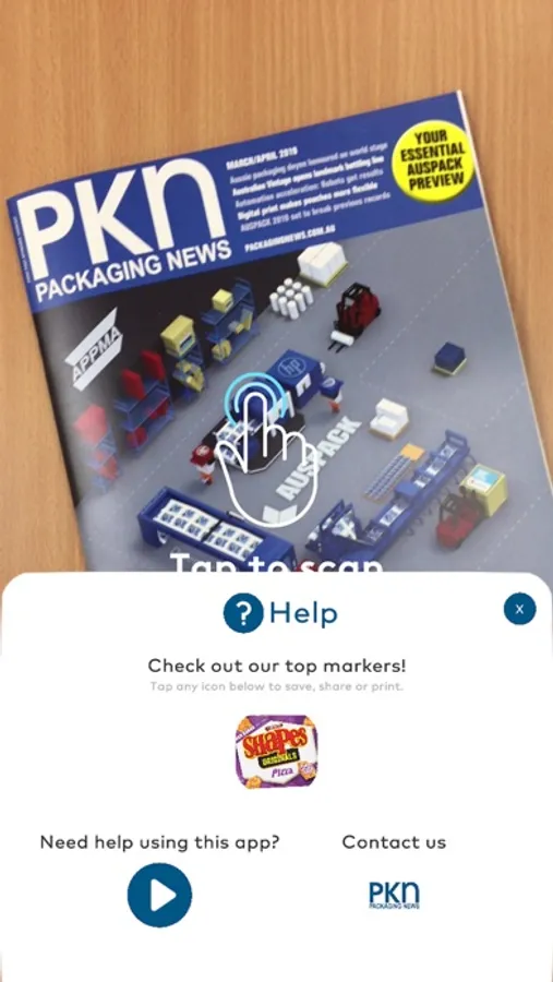 PKN AR app has been developed to trigger augmented reality experiences activated by scanning an item of printed packaging. The first example is a gaming experience activated by scanning the packaging for Arnott's Shapes Originals Pizza.. Simply hover your device over the packaging and let the games begin.