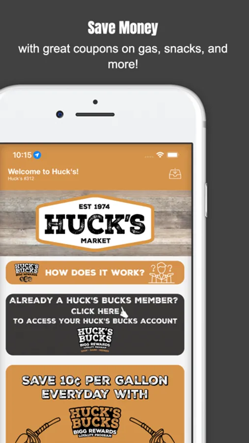 Save money at Huck's Bucks Bigg Rewards stores with great coupons on gas, snacks, and more!