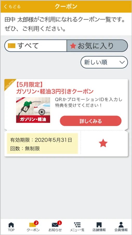 登録した店舗で実施中のキャンペーン情報や各種最新情報をお届けします。