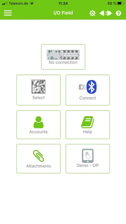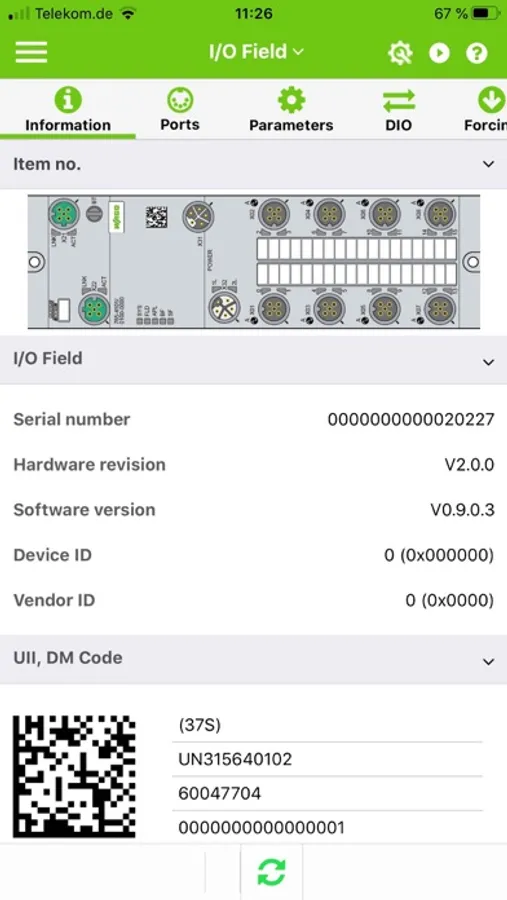 This app allows you to display device information for both fieldbus modules and IO-Link hubs, make settings and adjust all device parameters. The communication this requires takes place through the Bluetooth® interface of the mobile device once Data Matrix has been scanned to select the device.