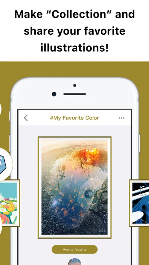 On pib, which has no search or ranking functions, encounters with illustrations are always once-in-a-lifetime. When you meet an illustration you like, press heart-shaped icon or double tap the screen so that you can add it to your favorite. By swiping on a daily basis, more and more of your favorite illustrations will be delivered to you.
