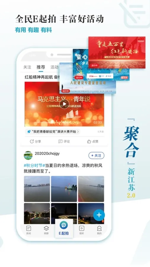 客户端定位以用户及其组织为中心,聚焦精品内容、短视频社交、党政网群服务,打造一个为党政机关、基层单位提供集内容发布、活动直播、互动管理为一体的公共服务平台。
