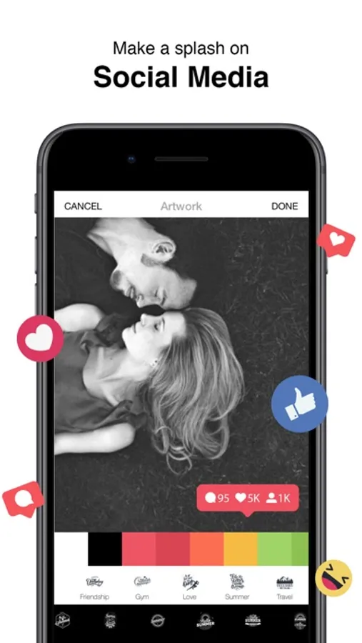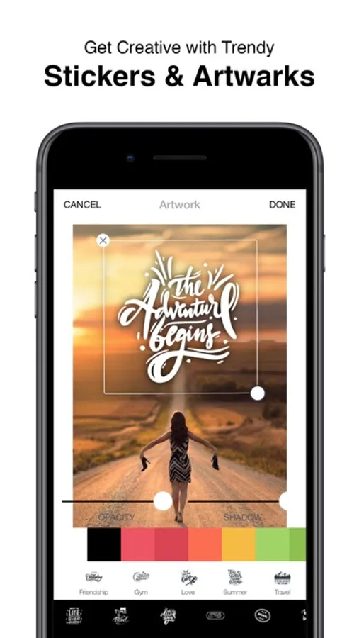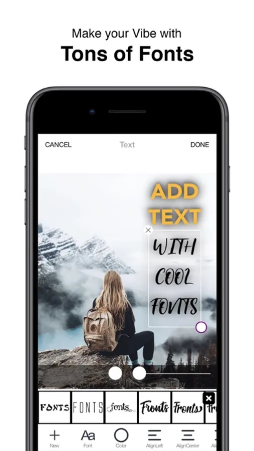 "add text to : write on photos" let you create amazing typographic artworks by easily transform your text and photos into a new vibe. No extra skills needed !