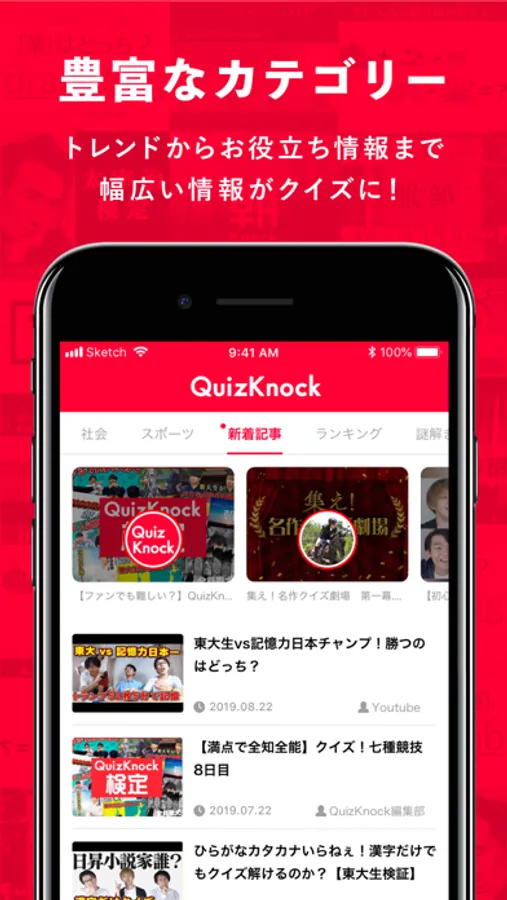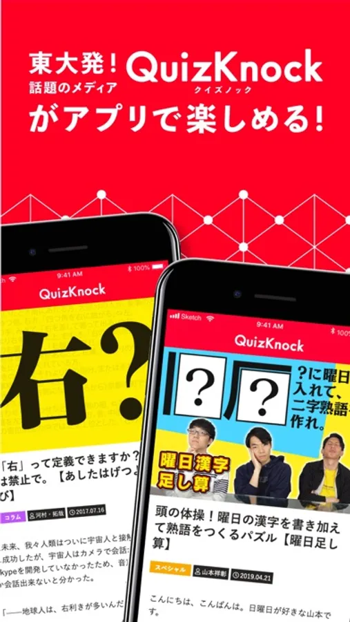 QuizKnock(クイズノック)は、「楽しいから始まる学び」をコンセプトに、何かを「知る」きっかけとなるような記事や動画を毎日発信する東京大学発の知的メディアです。