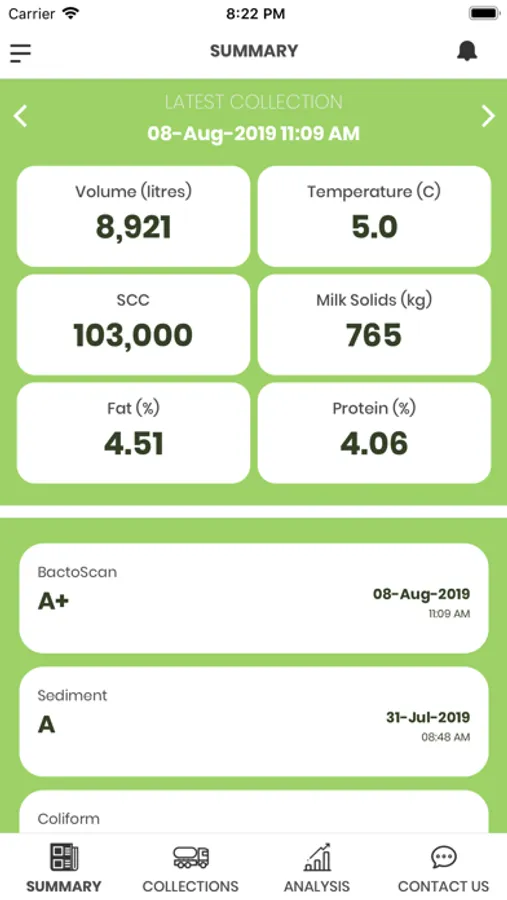 Useful FAQ, contact, and alert notifications of new collection data, and grades.