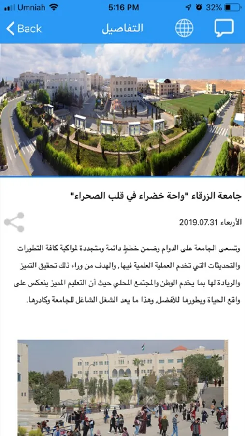 يعد تطبيق جامعة الزرقاء الأول من نوعه في مجال تقديم الخدمات المختلفة للطلاب حيث يحتوي التطبيق على أكثر من 20 خدمة مختلفة لخدمة الطلاب .
