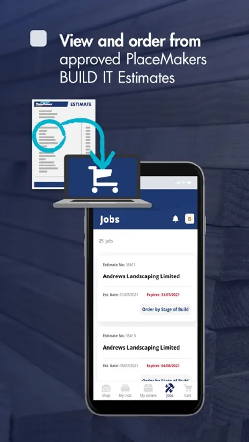 - View and order from approved PlaceMakers BUILD IT Estimates, from any stage of build, and add onto the orders at your specific quoted price