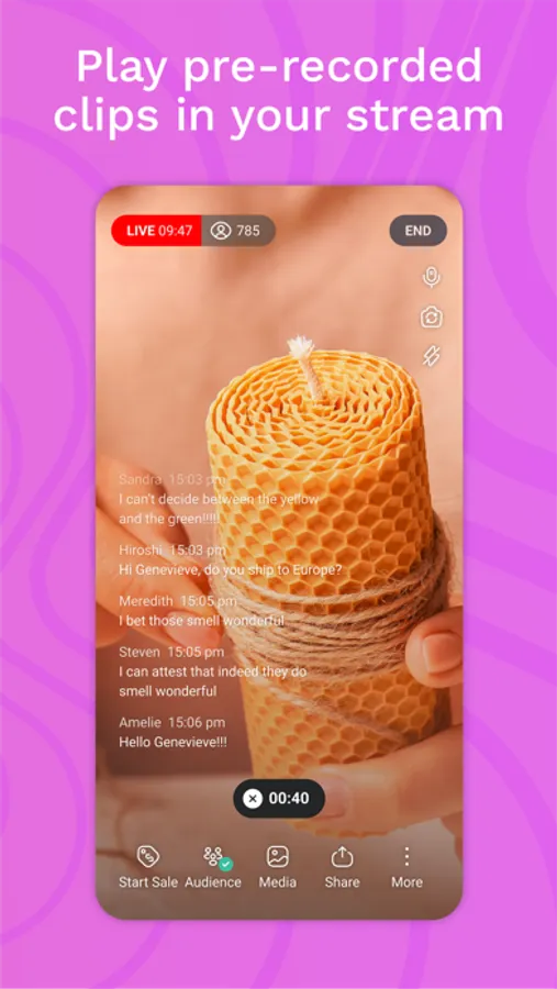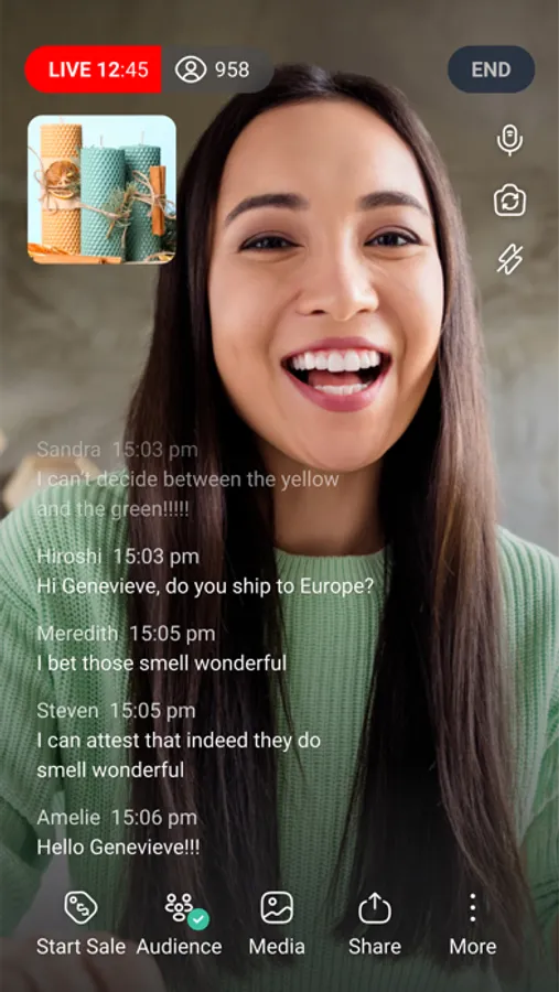 Most importantly, the Mobile Studio lets you see what your audience of customers are saying and who’s buying so you can chat in real time, answer questions and thank buyers right on screen.