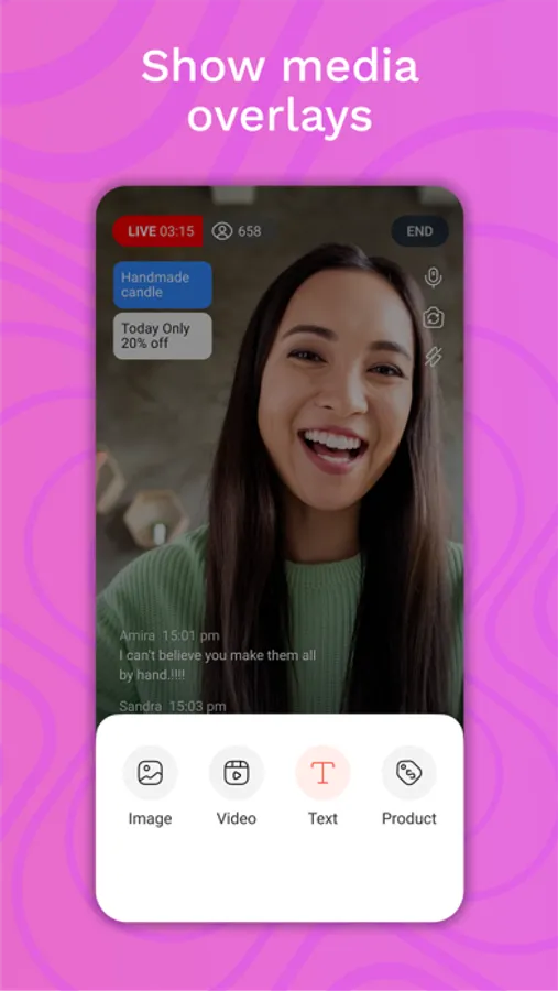 Just connect your Shopify store and go live as easily as making a video call. You can talk to your audience like they’re in the same room. It’s an incredible way to connect customers to your brand, interact and make sales.