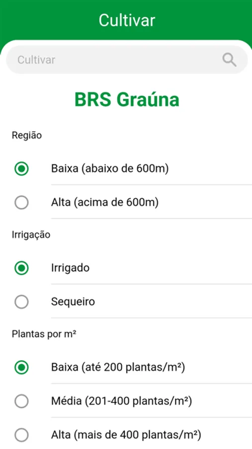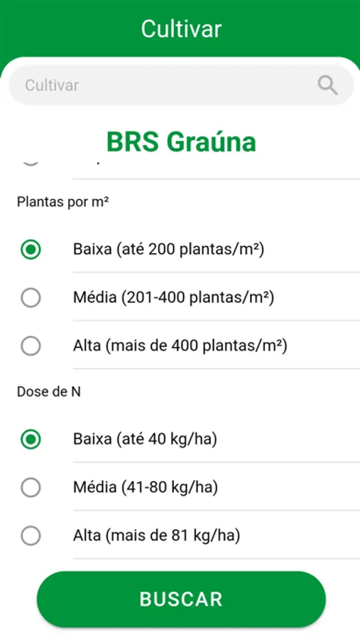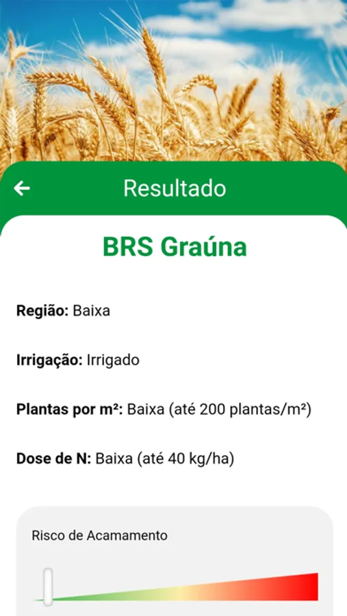 O aplicativo possui um banco de dados, resultado de vários anos de ensaios de campo realizados pela Fundação ABC em diferentes regiões e com diversos cultivares de trigo e cevada, com aplicação do regulador de crescimento Moddus, visando reduzir o acamamento de plantas ou alterar a arquitetura das plantas. Com base nesses ensaios foi possível definir parâmetros que podem influenciar principalmente no risco de acamamento. Então, a partir de parâmetros pré-definidos o usuário pode escolher a cultivar de trigo ou cevada, e realizar alguns filtros para que o aplicativo faça uma busca no banco de dados. Após escolher a cultivar, os filtros contemplam parâmetros para caracterizar a região, como a altitude, acima ou abaixo de 600 m do nível do mar, e alguns parâmetros de manejo, como irrigação, população de plantas e dose de nitrogênio. Portanto o usuário pode escolher se o sistema de cultivo tem irrigação ou se é sequeiro, três níveis de população de plantas, até 200 plantas/m², entre 201 e 350 plantas/m² e acima de 350 plantas/m², e mais três níveis de dose de nitrogênio, até 30 kg/ha, entre 31 e 50 kg/ha e acima de 51 kg/ha. Com os parâmetros escolhidos, o aplicativo faz a busca no banco de dados, identifica o risco de acamamento para cada situação e então faz uma sugestão da dose do regulador de crescimento a ser aplicada (mL/ha) e qual seria o melhor estádio fenológico para fazer a aplicação, sempre respeitando as doses de registro do produto para uso nas duas culturas.