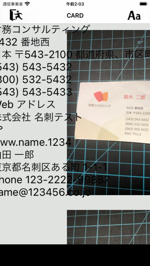 * The camera shooting function of the app shoots business cards, saves them, and converts them into characters by OCR.