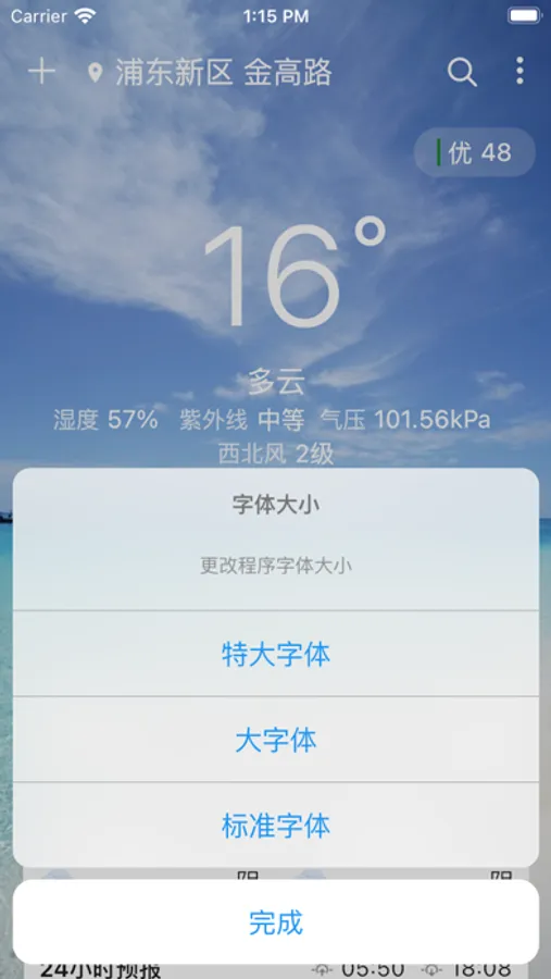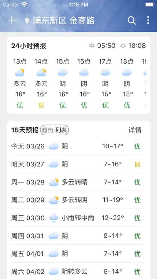 天气预报信息准确全面,24小时、未来15天、气压、湿度、能见度、紫外线,日出日落等都是出行的好帮手。空气质量提供未来24小时预测图以及当时实况数值。切换城市可以快捷访问北京,长春,长沙,常州,成都,重庆,广州,桂林,邯郸,杭州,合肥,黄山,济南,廊坊,丽江,洛阳,南昌,南京,宁波,青岛,三亚,厦门,上海,沈阳,深圳,苏州,唐山,天津,武汉,无锡,西安,徐州,郑州等地区天气预报。