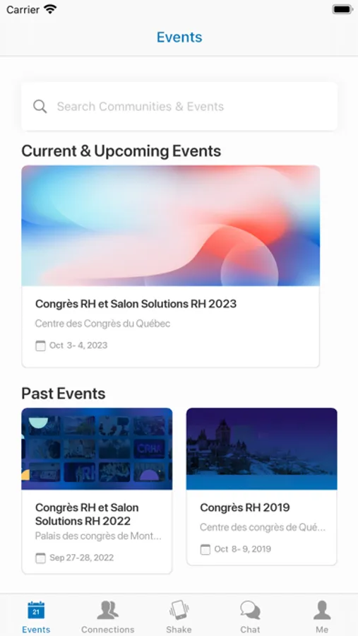 Application pour les participants du Congrès RH et du Salon Solutions RH 2023 organisés par l'Ordre des conseillers en ressources humaines agréés les 3 et 4 octobre au Centre des congrès de Québec.