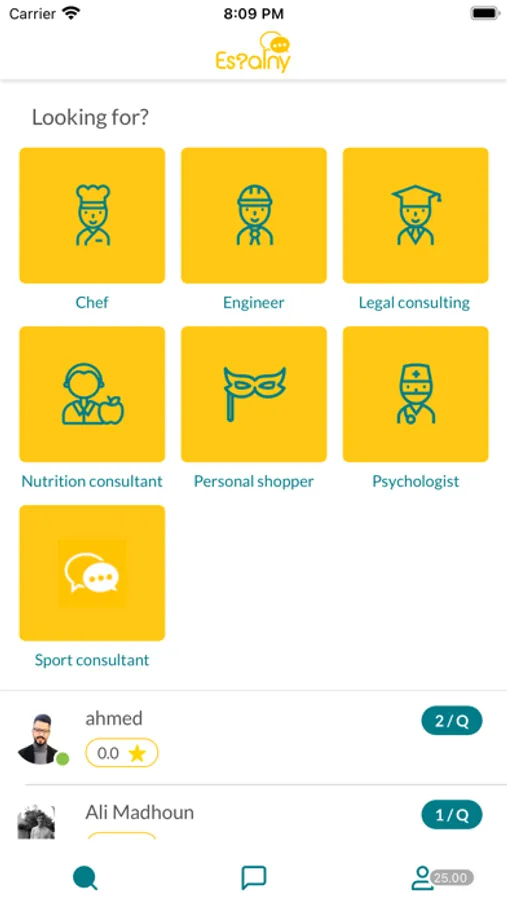 ESALNY GENERAL TRADING is a question and answer based application, the user can use the application to get his question answered by a certified consultant without the need to call the consultant or visit him. This application was made to make the process easier for interaction by messaging in-app, the consultant has a choice to follow up with a question if he still needs clarification on the question asked or he could just click the answer button and give the final answer and the chat would end there. The whole process of the application is based on a credit module, so in order to ask a question or have a conversation with the consultant, you pay a specific amount of credits.
