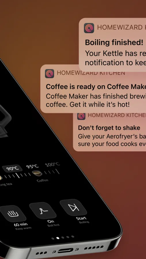 The HomeWizard Kitchen app gives you full control of your connected Kitchen devices. All you have to do is lift one finger.