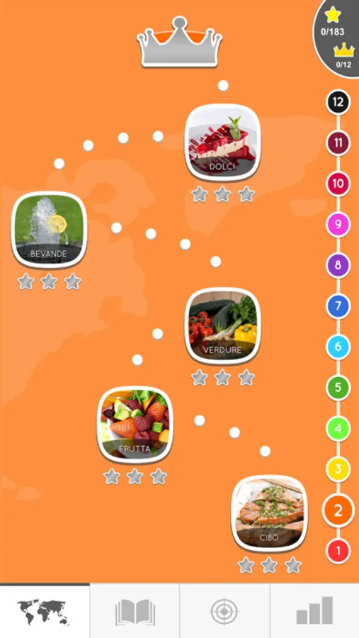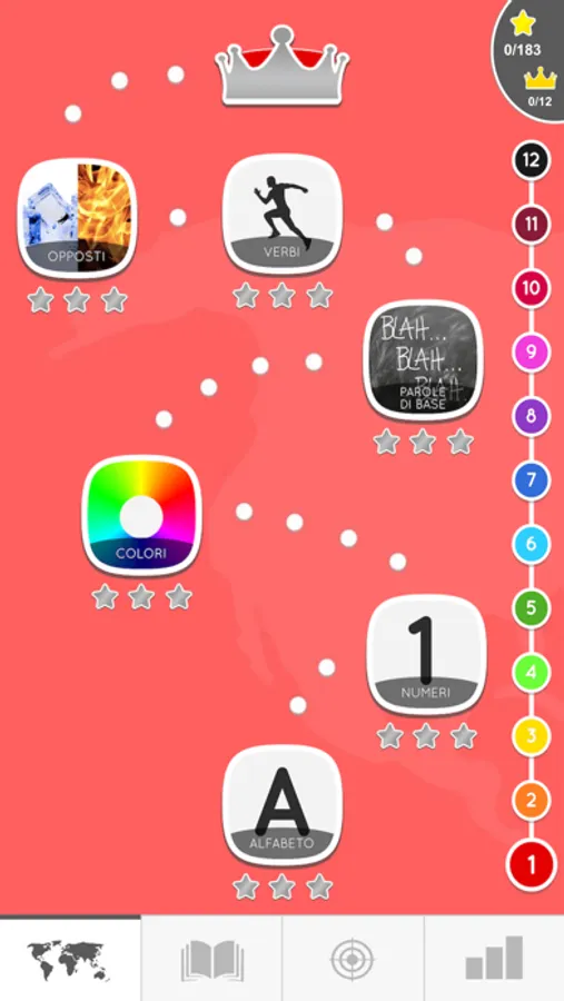 Basic: Alphabet letters , Numbers , Colors , Verbs , Food …