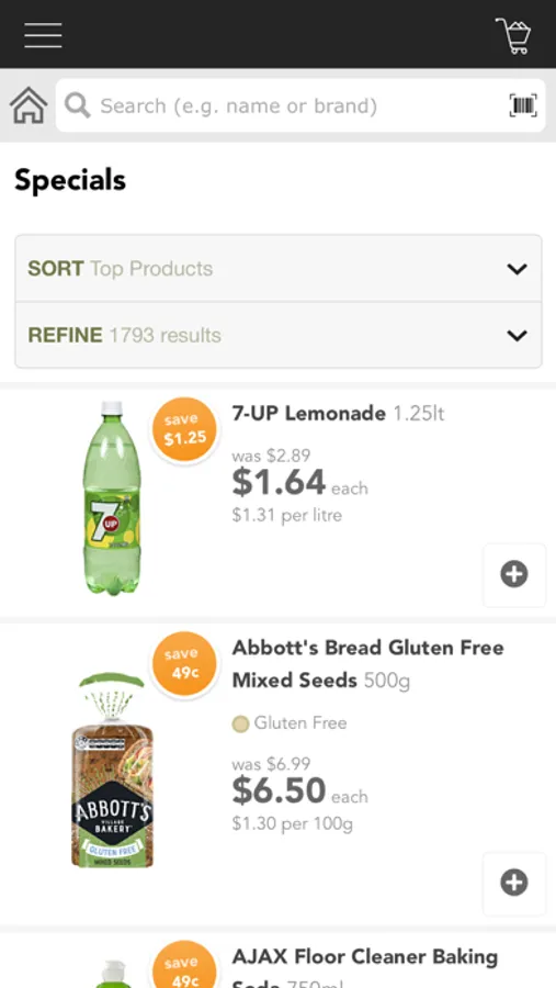 Simply scan barcodes to add to your basket or browse the aisles, just like in-store. You can view your last order and your frequent purchases and add them quickly to your basket again.