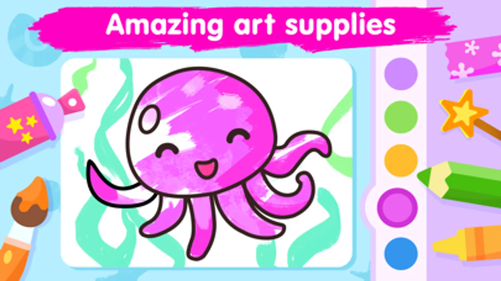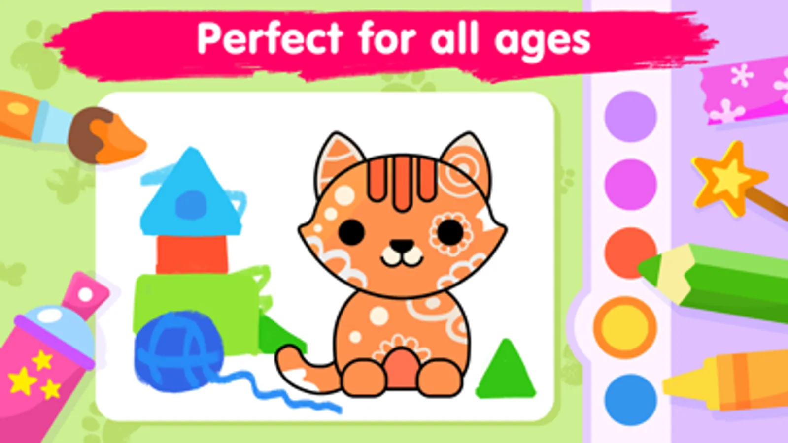 Pencils and brushes at the ready! Enjoy coloring, drawing and learning with the Kids Coloring app!