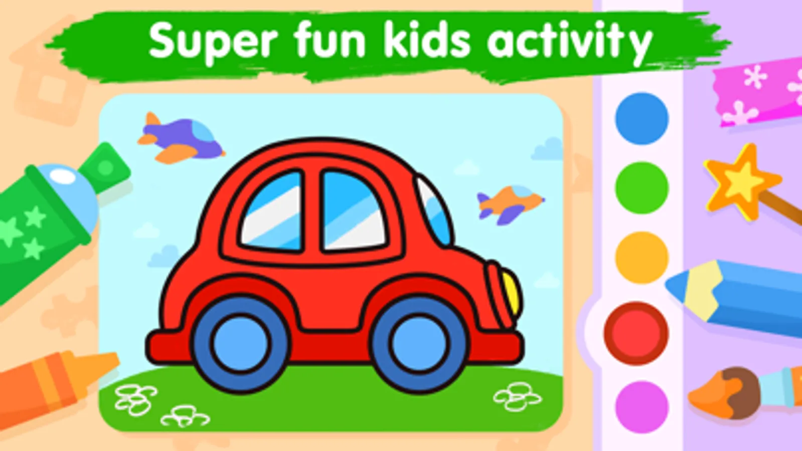 Kids Coloring gives you cute pictures, an array of vivid colors and many different tools for coloring. Immerse children in a world of color, magic and creativity.