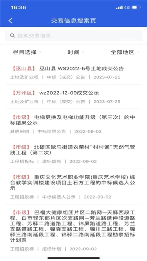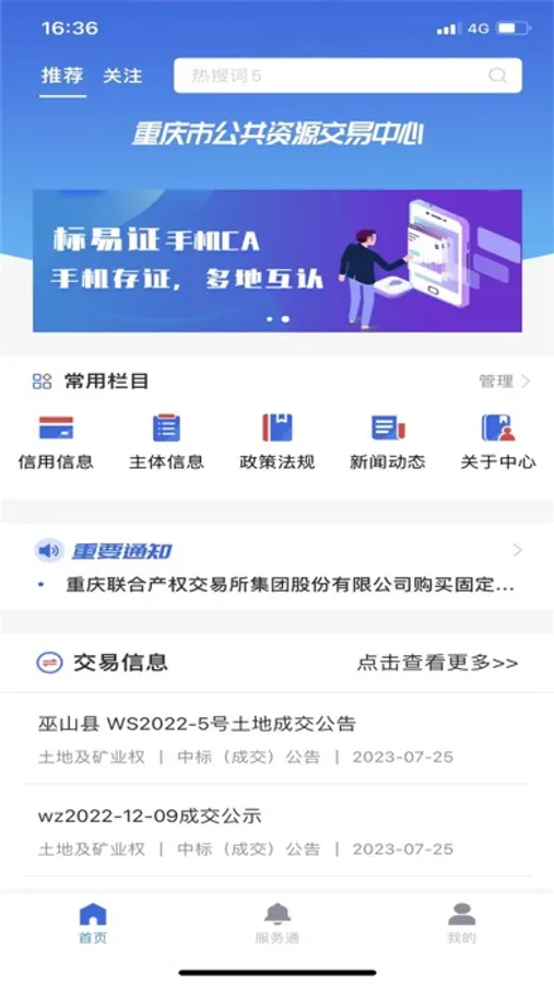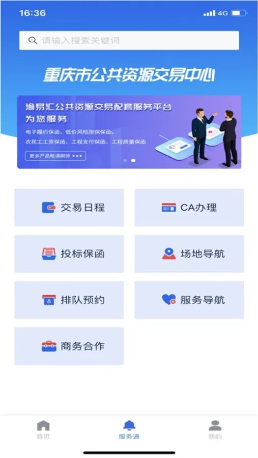 主要展示重庆市公共资源交易网交易信息、交易日程、重要通知、中心动态、服务导航、主体信息、招投标信用信息等公开的信息资讯,提供市场主体排队预约、场地导航等业务服务功能。