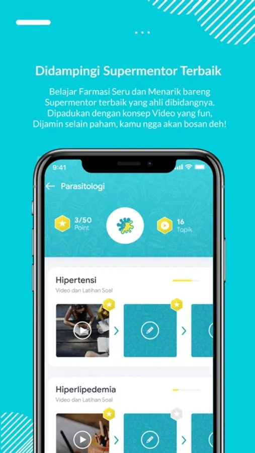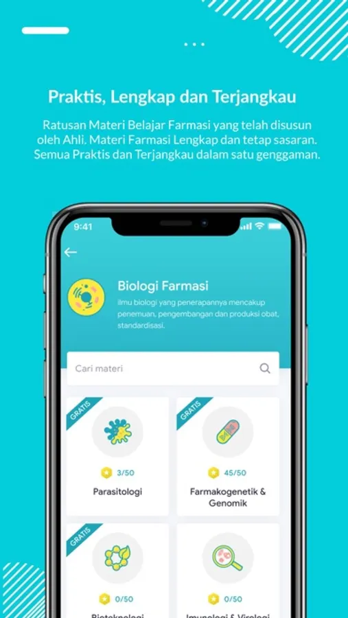 Mulai dari nonton video belajar, latihan soal, les privat, try out, cari kerja, media berita dapat diakses melalui smartphone. Kontennya tersedia untuk berbagai jenjang dari Sekolah Menengah Farmasi (SMF), Diploma Farmasi (D3), Sarjana Farmasi (S1), Apoteker dan Tenaga Teknis Kefarmasian sesuai kurikulum nasional dan dirancang khusus oleh pengajar terbaik dan berpengalaman.