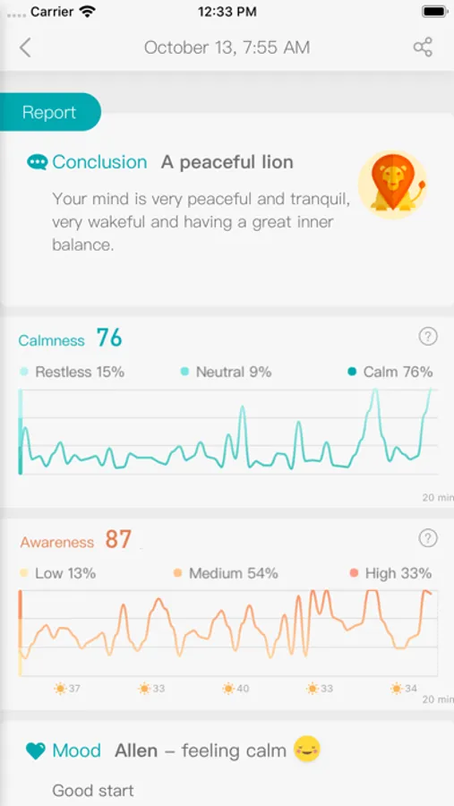 this app integrates with the Health appSimply put, calmness level increases when you have a good control of your mind to reduce mind wandering and as a result you experience peace and harmony within you. On the other hand, awareness level increases when you constantly engage yourself in the object of meditation (such as your mind and body) your mind becomes sharper and more sensitive. Last but not least, by sustaining both calmness and awareness, you maintain a great inner balance and equanimity, your mindfulness automatically improves.