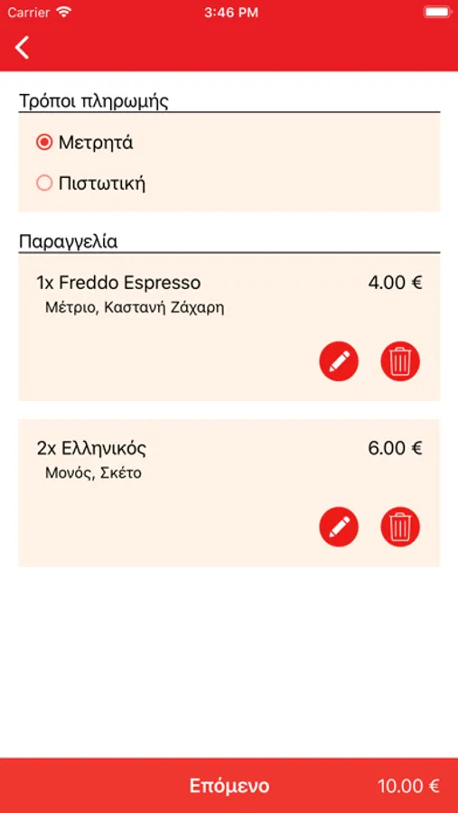 - να πληρώσεις με μετρητά ή κάρτα.