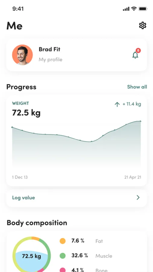 - Je gewicht en andere statistieken invoeren en je voortgang bijhouden