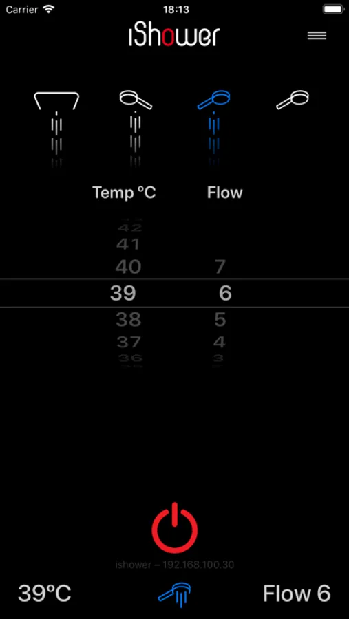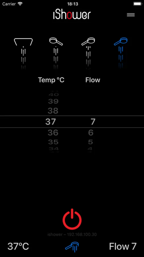 iShower X is an application allowing your iPhone or iWatch to control all the functions of iShower and SkyShower systems while providing a real time feedback of the water temperature and flow at each outlet as well as the temperature within the shower enclosure locally or via the cloud.