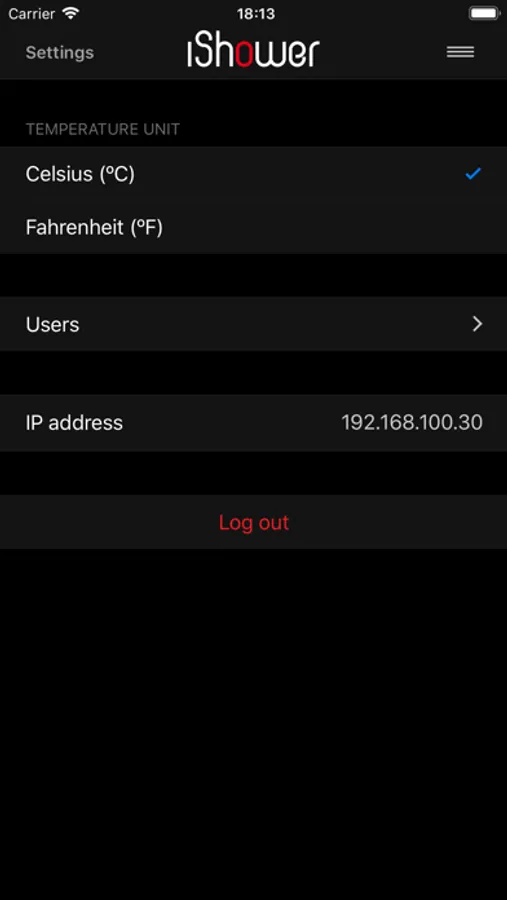 Requires iShower/SkyShower MK4 wired to a network with WiFi access.