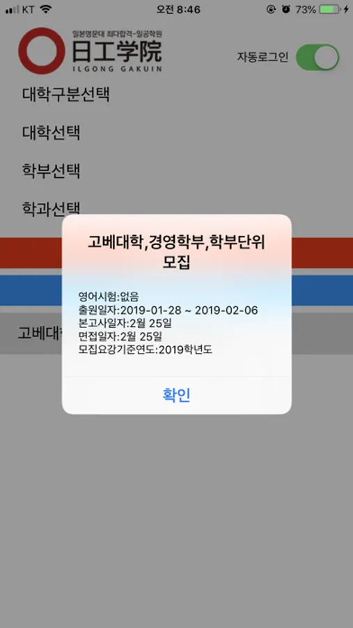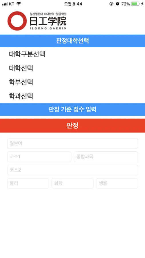 현재는 학원생 전용앱으로, 비학원생은 학교검색과 합격진단만 이용할 수 있습니다.
