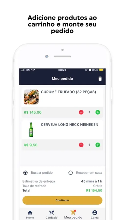 No app, você encontra de forma rápida o cardápio completo e ainda pode utilizar a ferramenta de busca para localizar diretamente os produtos que você deseja.