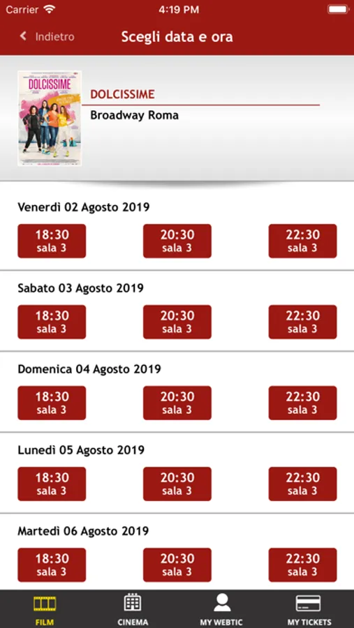Potrai prenotare un massimo di 8 posti al giorno, anche per film diversi.